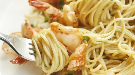 물에 소금 1/2를 넣고 끊으면 파스타면을 넣고 약 7분간 끓입니다. (파스타 면 종류에 따라 익히는 시간을 조절해 주세요.)
