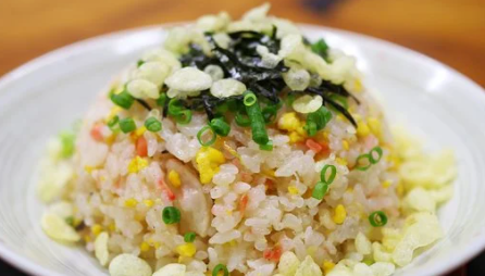 3. 마늘이 노릇노릇 익을 때까지 약불에 볶아주다가 쌀밥을 넣고 섞어 주세요.